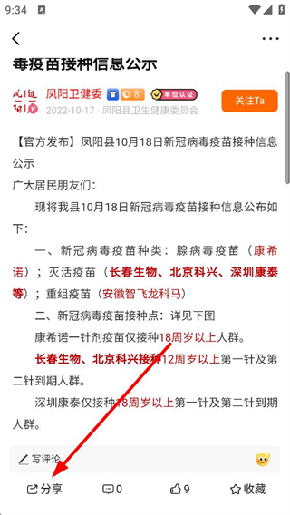 3、點擊橙聘里的文章進入詳情頁,可查看疫苗接種信息公示的具體內容,還能進行評論等互動操作。