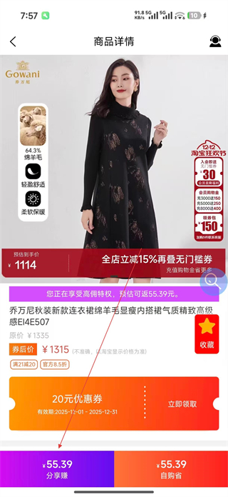 3、在商品詳情查看商品的原價券后價等信息,領取對應的優惠券,確認商品規格和優惠力度后,點擊下方的分享商品按鈕。
