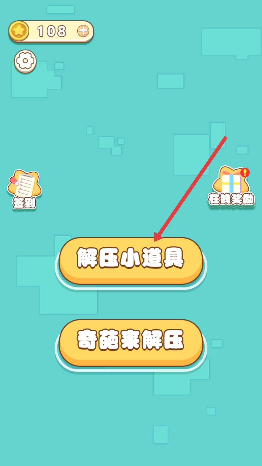 1、玩家下載游戲登入游戲頁面后,若想體驗解壓小道具,點擊【解壓小道具】按鈕,開啟相關解壓玩法。