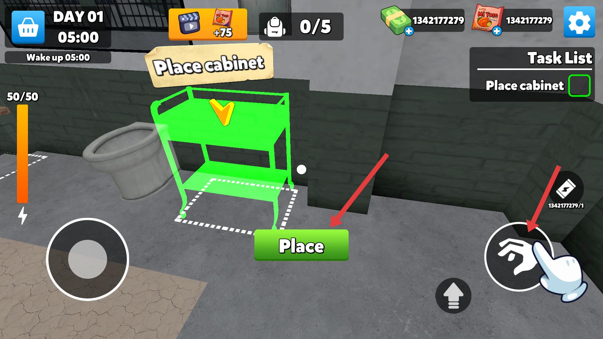 2、將柜子移動到虛線框位置,點擊綠色【Place】按鈕,就能完成柜子的放置,繼續后續任務。
