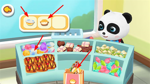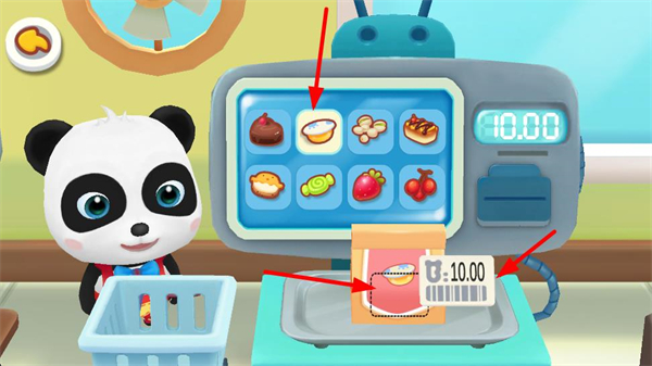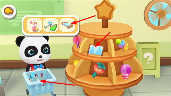 4、查看新的物品提示,從展示架上找到對應的物品,將其放入購物籃里,完成新一輪的物品選取任務。