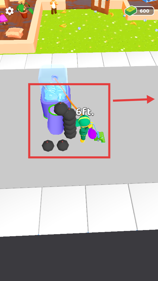 1、首先操控角色在地面區域活動,利用清潔工具清理地面上的香蕉皮等垃圾,界面會顯示清潔范圍,通過移動角色讓清潔工具覆蓋垃圾區域。