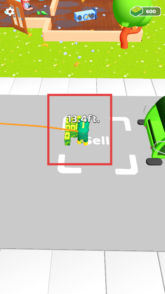 3、然后開始搬運大型物品,操控角色靠近物品,利用工具將其綁定,界面顯示搬運距離,然后將大型物品搬運到指定的綠色車輛附近的位置,將垃圾轉換成貨幣。