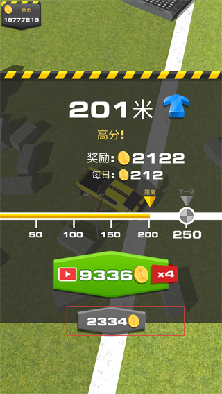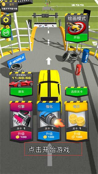 4、車輛在沖刺過程中會收集賽道上的金幣,同時行駛更遠距離等也會獲得金幣獎勵,利用這些金幣可以對車輛升級。