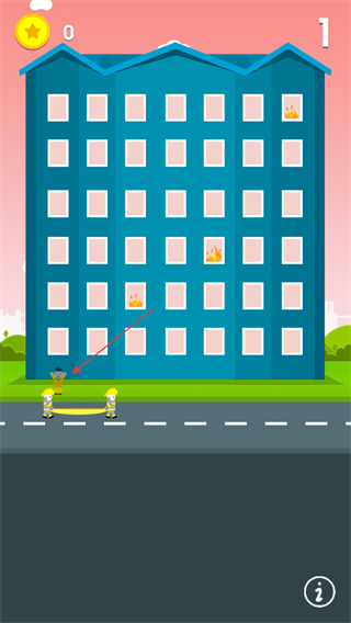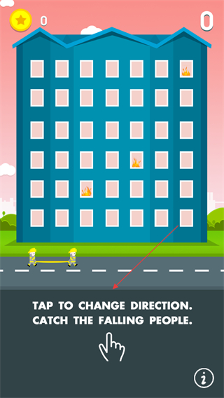 2、根據游戲提示圖標標記的內容,點擊屏幕來改變救援工具的方向,以便接住從著火大樓掉落的人員。