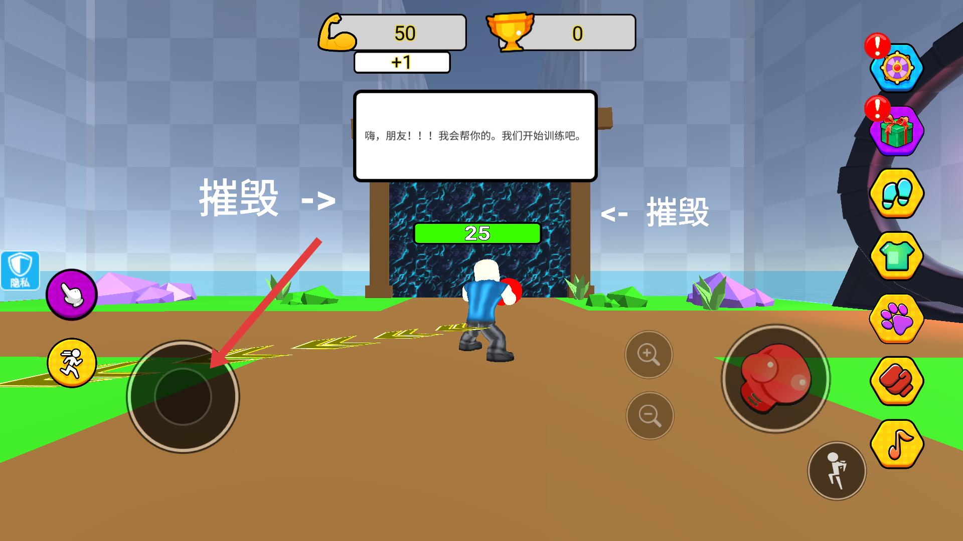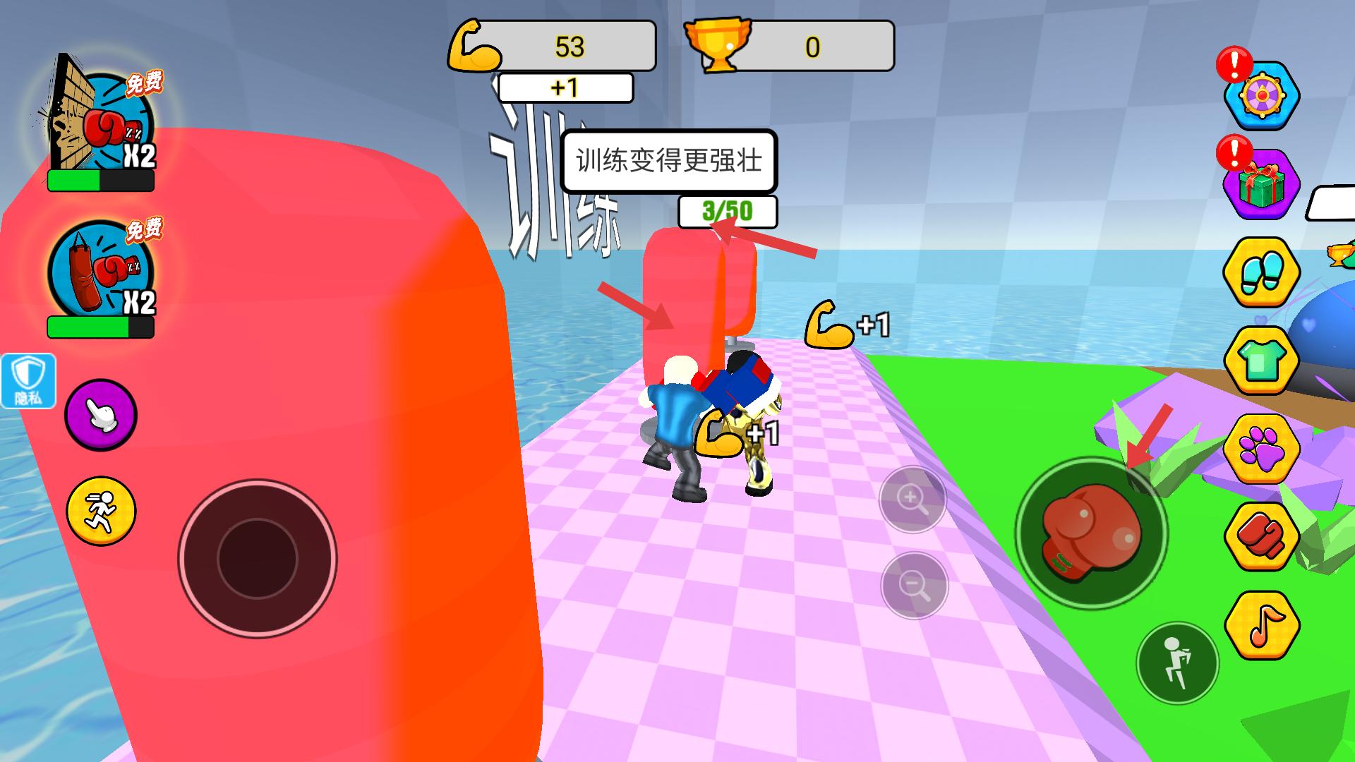 2、進入訓練環節,需不斷出拳打擊目標,每次打擊能提升力量值,持續出拳,讓力量值逐步增長,為后續挑戰做準備。