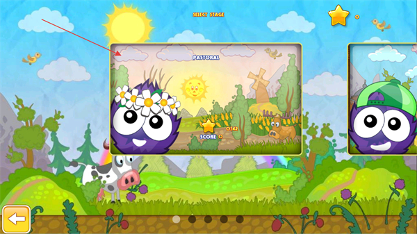 2、進入關卡選擇界面后,瀏覽不同的關卡場景,每個關卡都有獨特的畫面和布局,選擇一個關卡進入游戲。