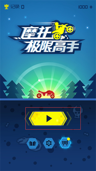 1、玩家下載游戲之后在游戲開始界面,點擊播放按鈕進入游戲,按下屏幕發動摩托車,開始在賽道上行駛。