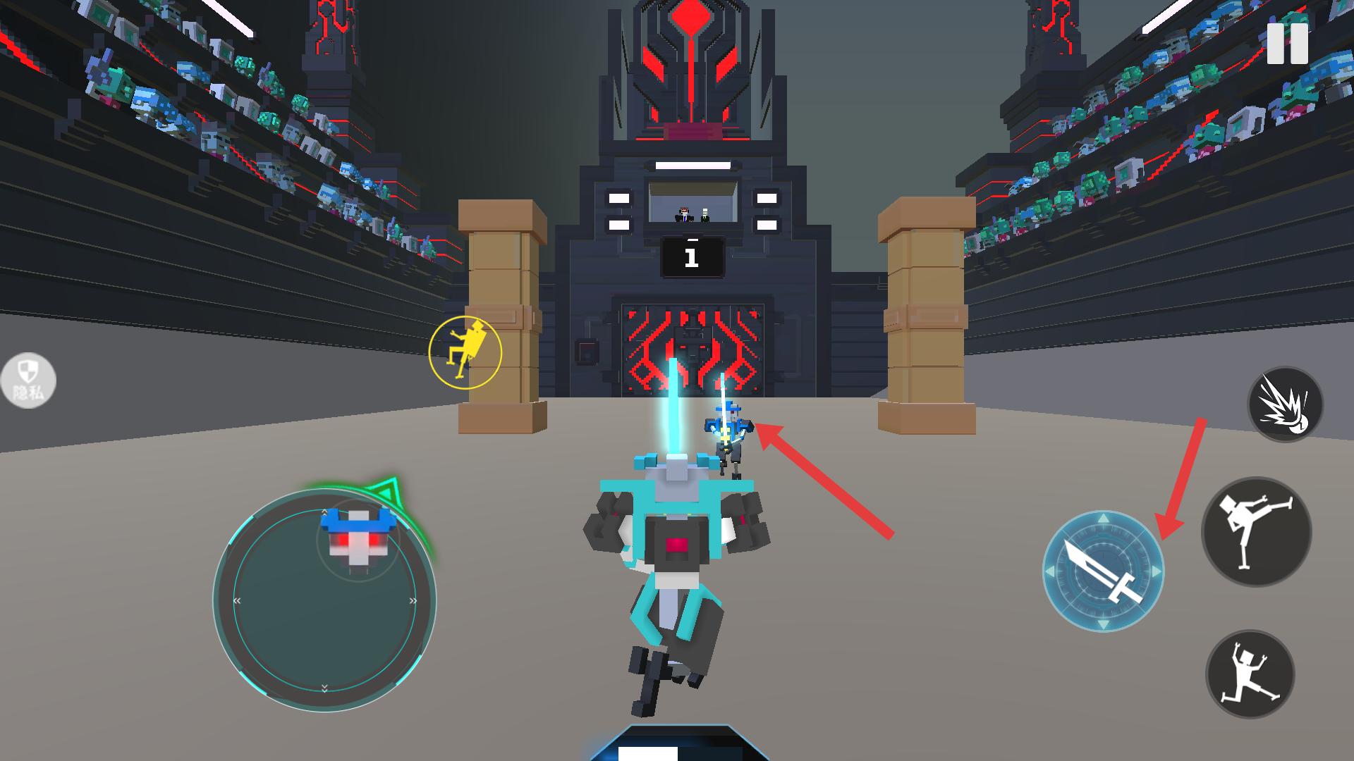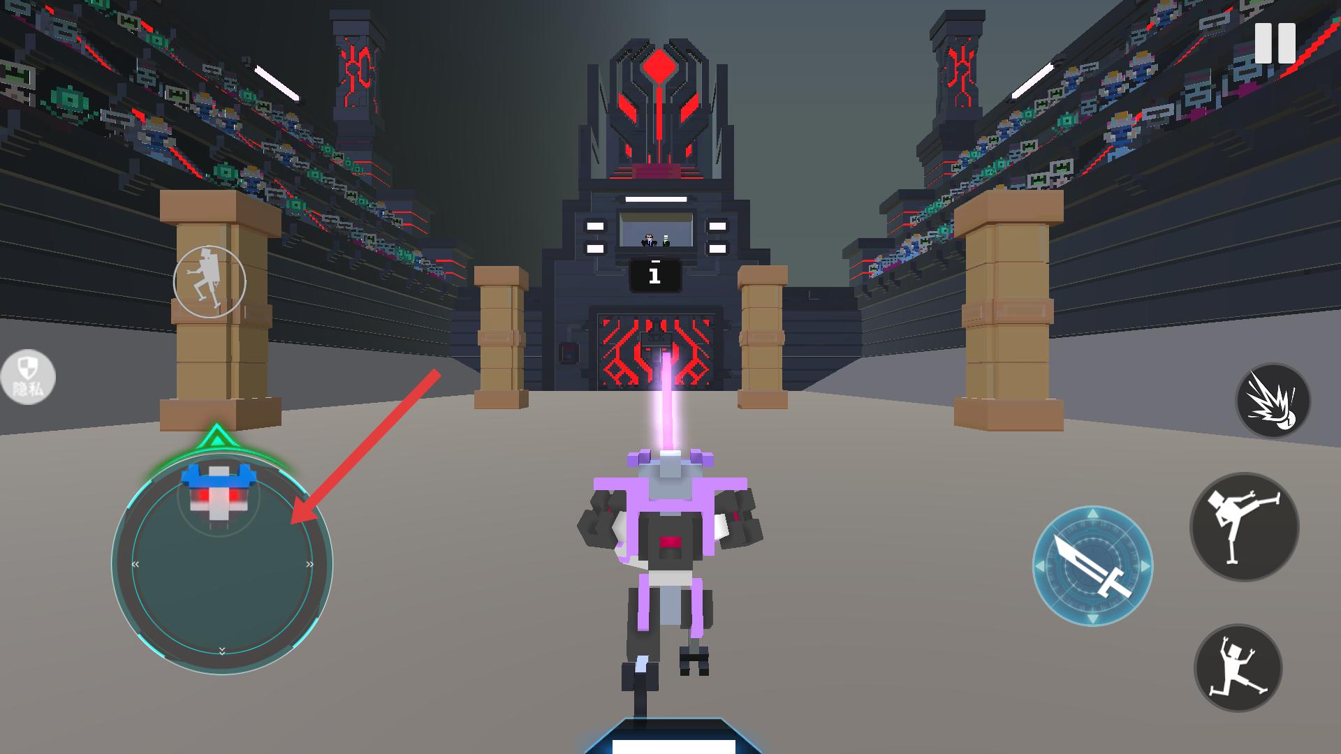 2、進入戰斗場景后,左側虛擬搖桿可控制角色移動方向,操控搖桿,讓角色在場景中移動,準備迎接敵人。