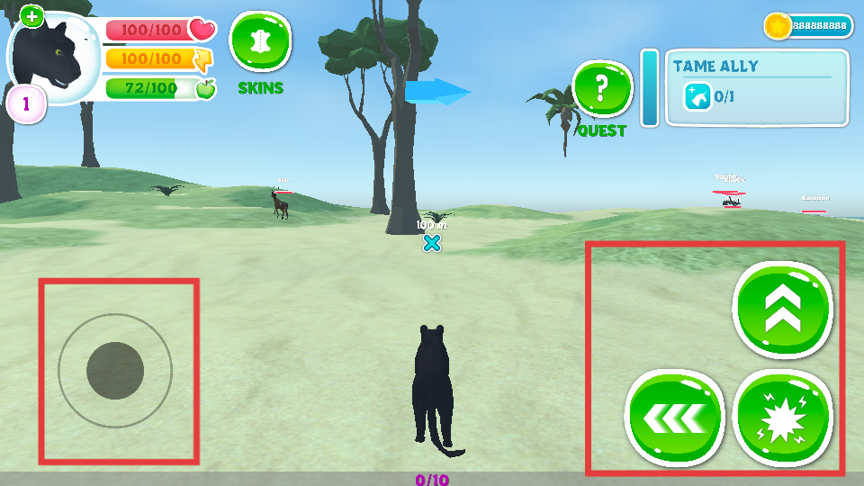 2、接著在游戲界面,左側虛擬搖桿可控制黑豹移動方向,右側有前進、攻擊等功能按鈕,通過這些操作能讓黑豹在場景中自由行走、追捕獵物或與其他動物互動。