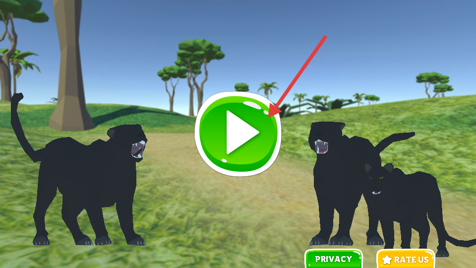 1、首先打開黑豹家庭模擬器,點擊綠色播放按鈕,就能進入游戲場景,這里有草原、樹木等環境,還有黑豹家族成員,開啟黑豹在野外的生存與冒險之旅。