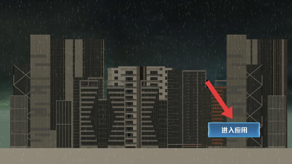 1、游戲初始界面有雨天城市背景,點擊進入應用,進入游戲,開啟城市相關的冒險與破壞玩法。