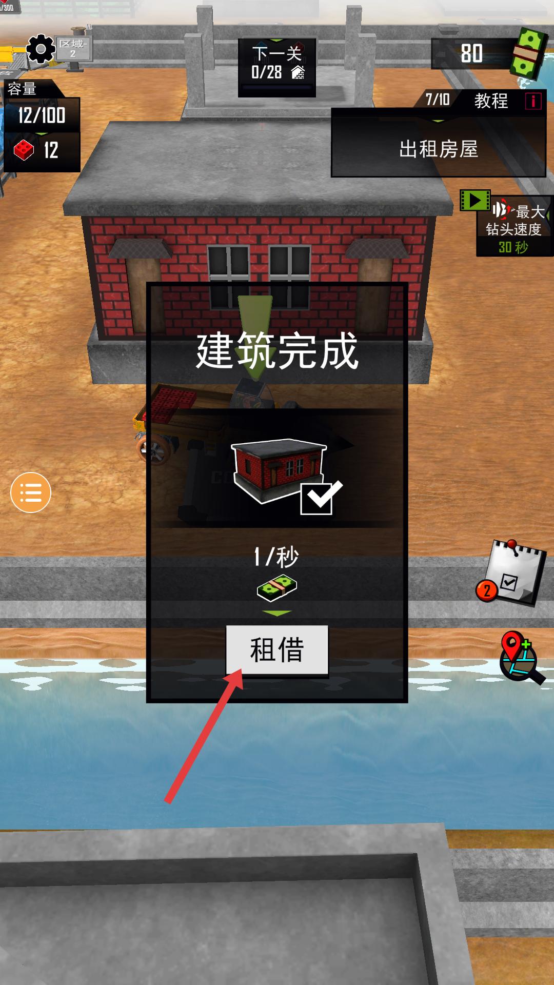 3、建筑完成后,會彈出提示界面,顯示建筑相關信息,點擊【租借】按鈕,可將建筑用于出租,獲取收益。