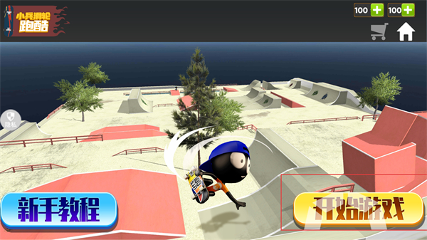 1、玩家下載游戲之后然后點擊進入,在游戲主界面點擊開始游戲按鈕,進入角色和滑板選擇界面。