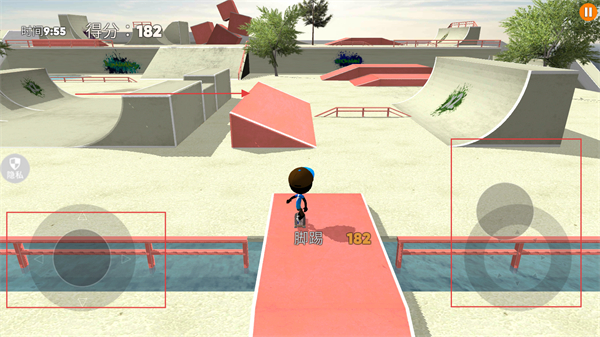 2、物理碰撞反饋:真實模擬滑輪運動中的速度慣性,不同材質的斜坡和管道會產生差異化彈跳效果,增強游戲的真實感。