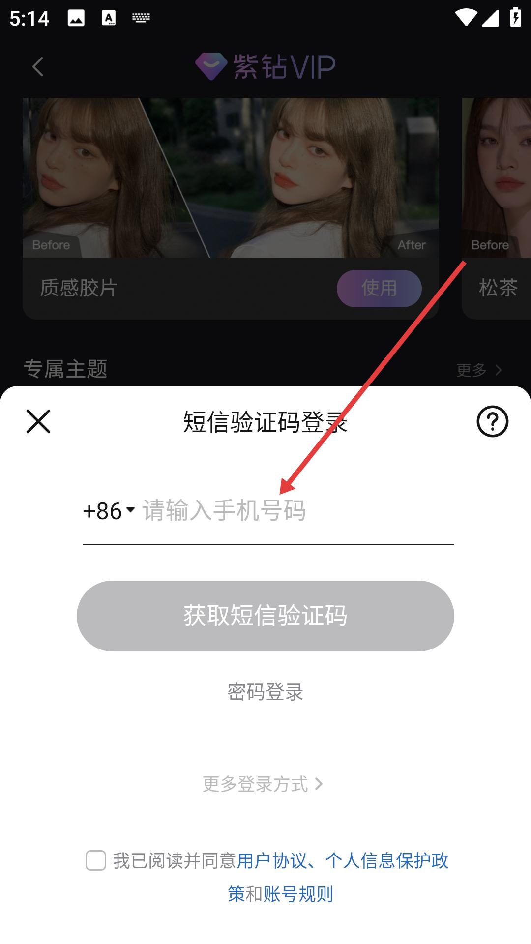 2、若點擊體驗后需要登錄,會彈出短信驗證碼登錄頁面,在輸入框中輸入手機號碼,準備獲取驗證碼進行登錄。