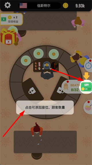 2、可添加座位顧客數量,界面會顯示座位升級按鈕,當前顯示8/32的席位狀態,擴容后能容納更多顧客增加收益。