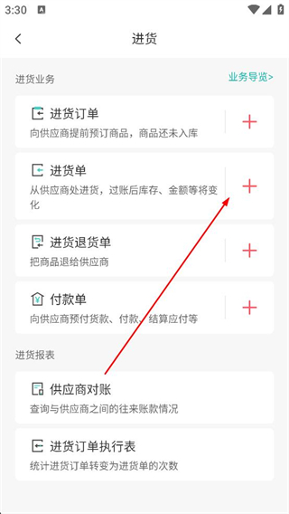 1、進入進貨頁面,查看進貨業務分類,選擇進貨單選項,開始選貨。