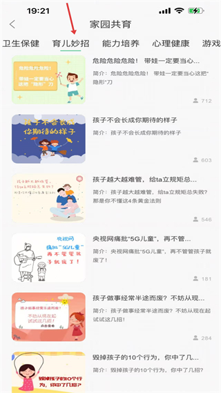 3、切換到家園共育的育兒妙招板塊,可查看帶娃安全等育兒內容,學習實用的幼兒養育技巧提升育兒能力。
