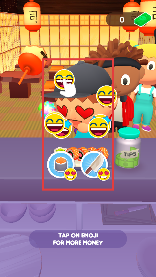 3、壽司制作完成后將其交給顧客,顧客會給出表情反饋,代表對壽司的滿意度,這些表情能直觀反映出壽司是否符合顧客預期,幫助你了解制作效果。