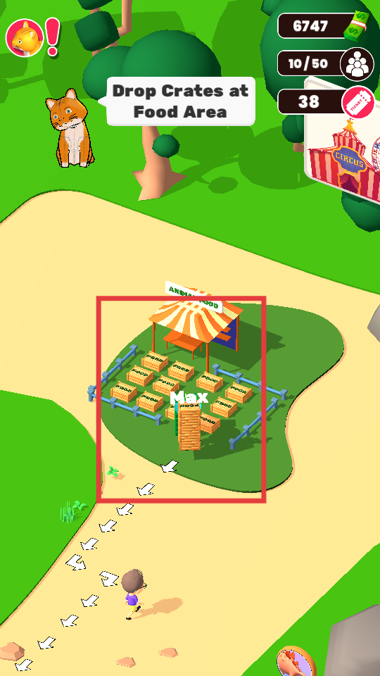 2、根據游戲里里的提示,按照指引你將食物箱放置在指定的食物區域,確保動物們能及時獲得充足的食物,維持健康狀態避免因饑餓影響游客體驗。
