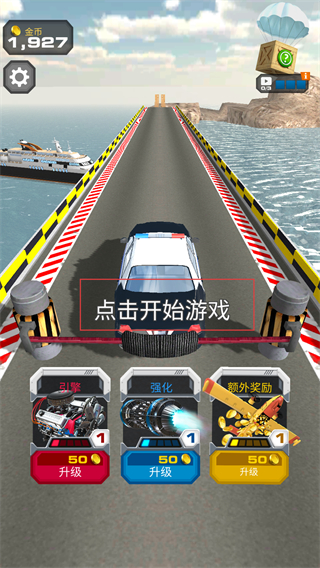 4、每次游戲結束后,會根據行駛距離等表現給予金幣獎勵,可點擊收集按鈕獲取這些金幣,利用金幣可以對汽車進行升級。