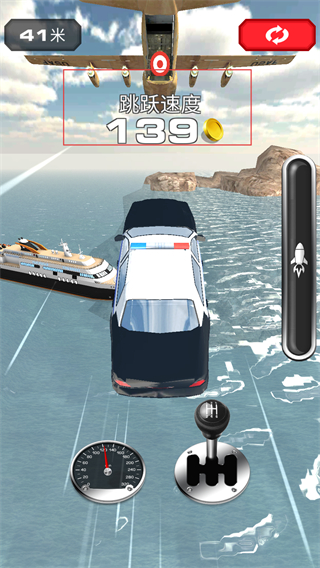 2、在行駛過程中通過相應操作讓汽車跳躍,留意屏幕上顯示的跳躍速度,盡量保持較高的跳躍速度,使汽車能跳得更遠。