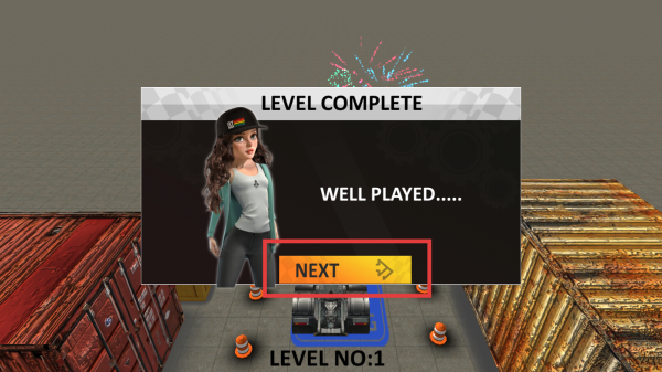 4、成功將卡車停到指定位置,完成當前關卡后,會顯示LEVEL COMPLETE關卡完成,此時點擊NEXT按鈕,可進入下一個關卡。