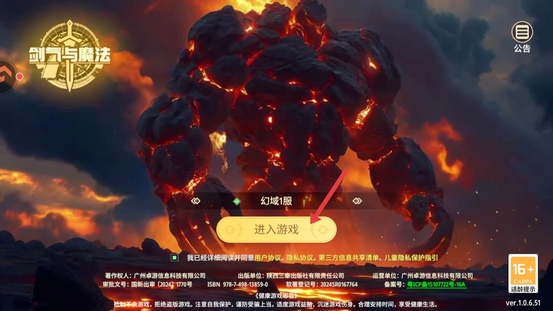 1、勾選已閱讀并同意相關協議后,點擊【進入游戲】,開啟在充滿奇幻元素世界里的冒險之旅。