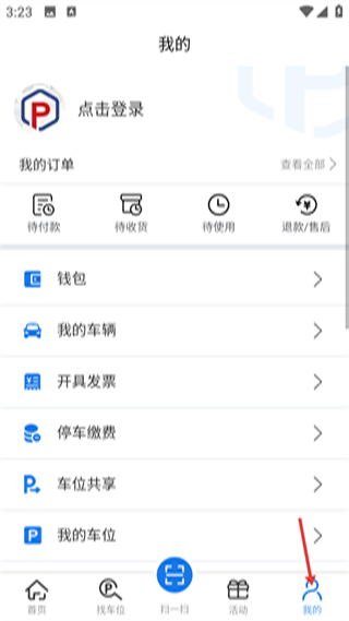 4、我的頁,含訂單管理等個人服務,支持登錄后管車位繳費,是用戶管理信息的個人中心模塊。