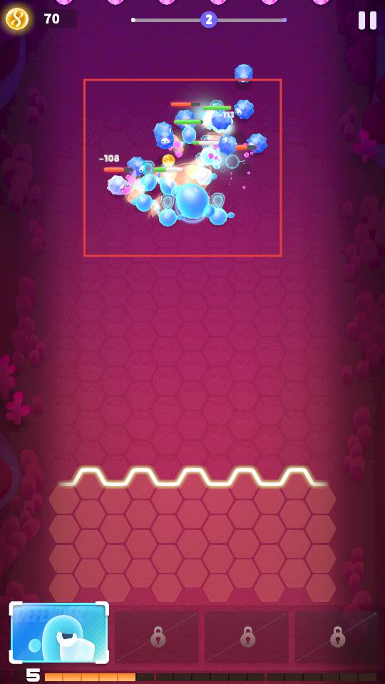 2、動態進化系統:每次擊殺病毒獲得基因片段可強化細胞部隊,提升攻擊范圍或分裂速度,最高支持五階形態進化展現華麗戰斗蛻變。