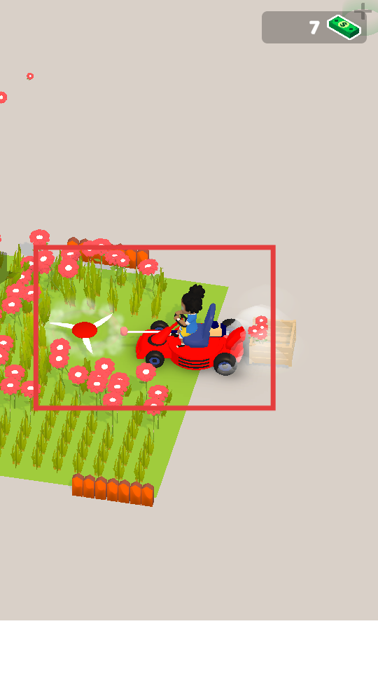 1、首先要采摘鮮花,駕駛紅色車輛利用車上的工具,在花田里對鮮花進行采摘操作,獲取新鮮的鮮花,這是鮮花店經營的第一步,為后續的鮮花處理和售賣提供原材料。