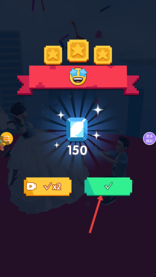4、獲得150鉆石獎勵后,可點擊綠色對勾按鈕確認領取,也能選擇觀看視頻將獎勵翻倍,助力后續游戲道具購買等操作。