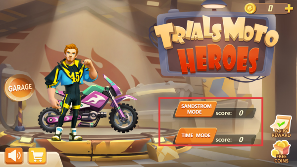 1、在游戲主界面可選擇Sandstrom Mode沙暴模式或Time Mode計時模式,玩家根據自己喜歡來挑選模式,盡可能快地完成賽道行駛。