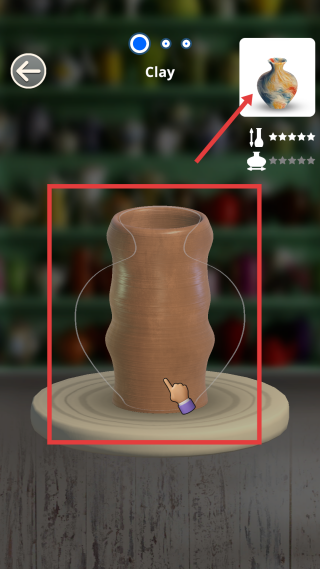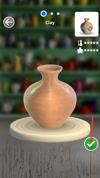2、當陶土形狀符合要求后,點擊右下角綠色對勾按鈕,即可確認陶土造型,進入下一步給花瓶上色的環節。