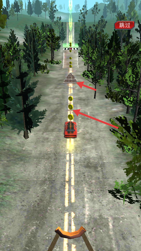 2、發射賽車后讓賽車沿著道路前行,經過坡道時利用坡道讓賽車騰空,繼續收集空中的金幣,穿越想墻這些阻礙,同時注意賽車的飛行軌跡。