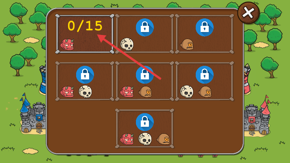 2、第一個界面顯示有15個關卡需要完成,還展示了每個界面會遇見的敵人類型,玩家可以從第一個開始挑戰,通關前面內容可解鎖新內容。