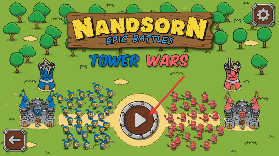 1、點擊界面中間的播放按鈕,玩具即可進入游戲,開啟塔防對戰之旅,指揮藍方士兵與紅方部隊展開戰斗。