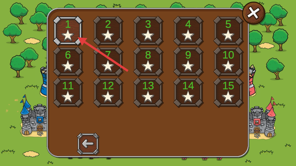 3、玩家進入關卡選擇界面,首次玩先從標有1的關卡開始挑戰,逐步通關可解鎖后續關卡,每個關卡都有獨特的戰斗場景與敵人配置。