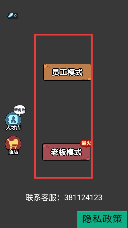 1、游戲初始有員工模式和老板模式可選,假如想體驗管理等老板相關玩法,可點擊老板模式,開啟對應的游戲內容。