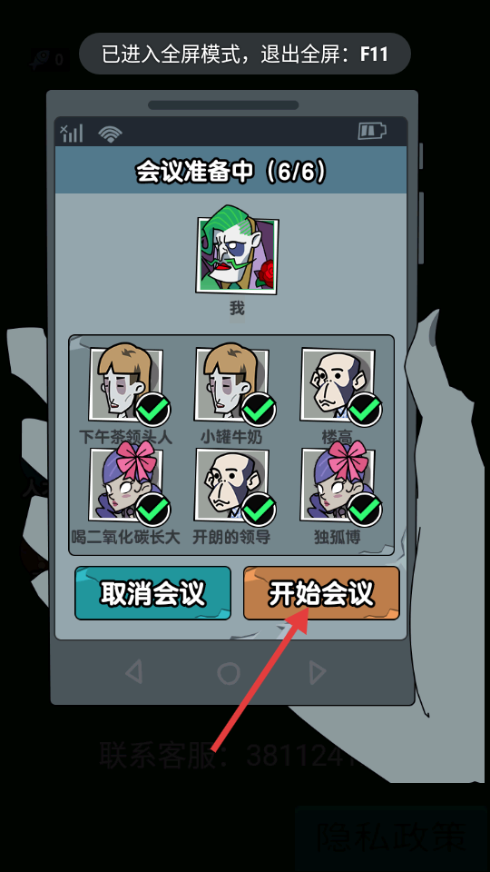 2、進入會議準備界面,當所有參會人員都準備好后,點擊開始會議按鈕,即可啟動會議流程,推進游戲中的會議相關環節。