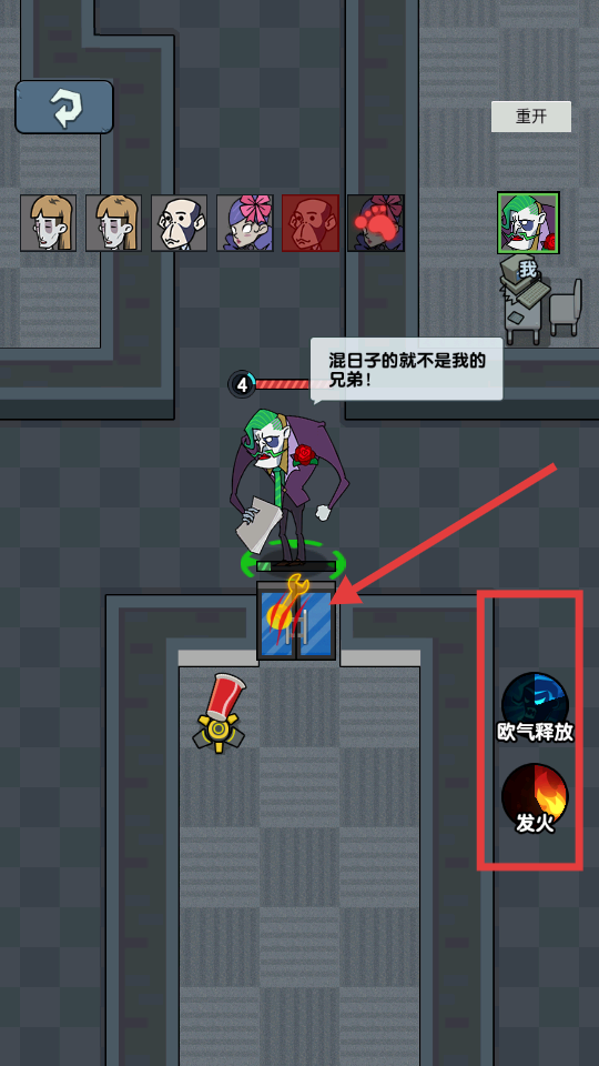4、遇到工作中的狀況時,可使用右側的歐氣釋放或發火功能應對不同情況,同時關注角色的對話和場景變化,完成相應的工作挑戰。