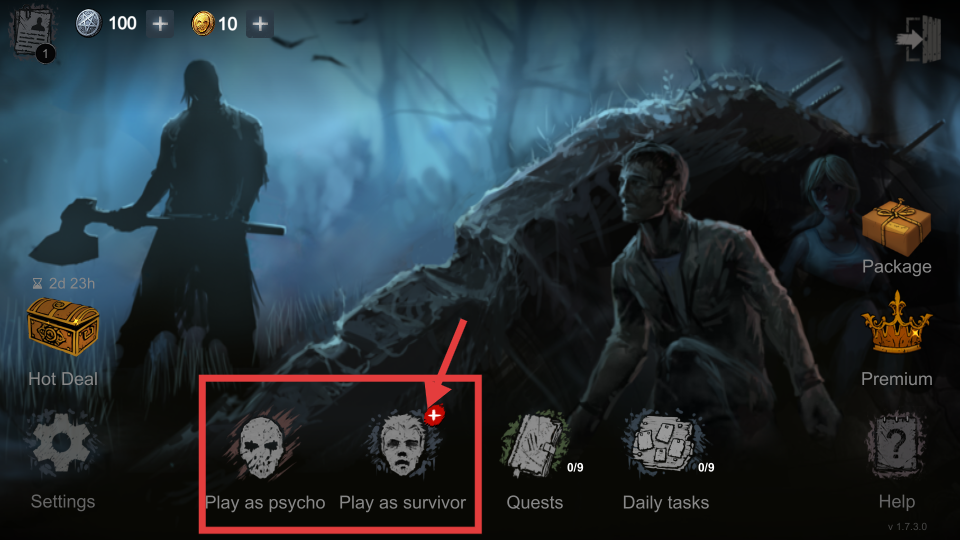 1、進入游戲有屠夫和幸存者視角選擇,選擇Play as survivor,以幸存者身份開啟游戲,在恐怖場景中展開逃生之旅,體驗幸存者生存挑戰。