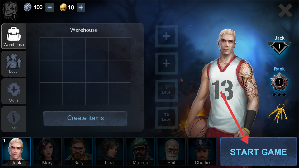 2、進入角色選擇界面,玩家選好角色后,點擊START GAME即可進入游戲,開啟與其他玩家的恐怖逃生冒險。