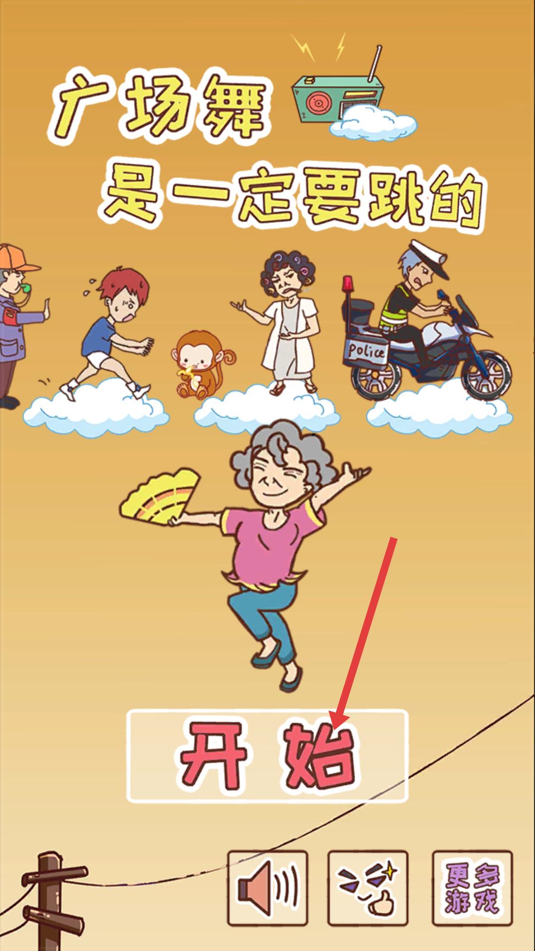 1、游戲初始界面,有游戲標題字樣,點擊開始按鈕,即可進入游戲,開啟廣場舞相關的游戲挑戰。