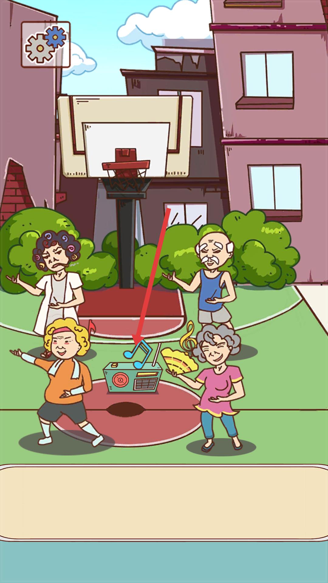 3、在第一關場景中,有幾位角色和播放音樂的收音機,操控角色跟隨著音樂節奏,進行廣場舞動作,完成關卡內的舞蹈任務。
