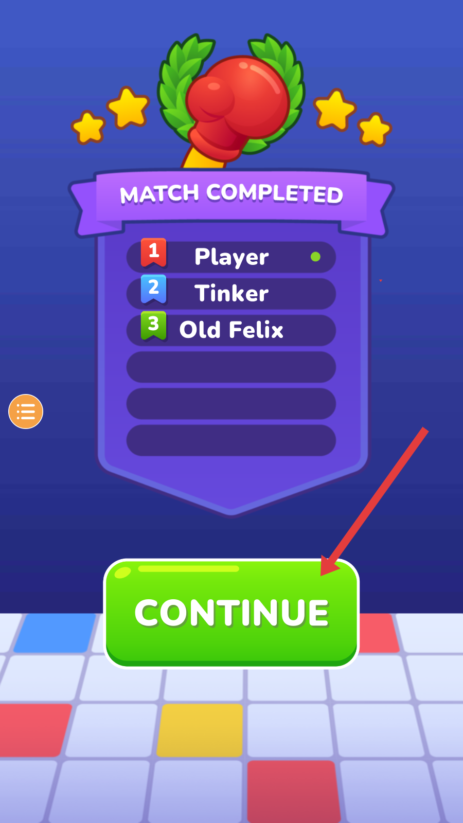 4、當比賽結束,界面會顯示比賽完成及排名,點擊繼續按鈕,可進入下一場拳擊比賽,繼續挑戰。