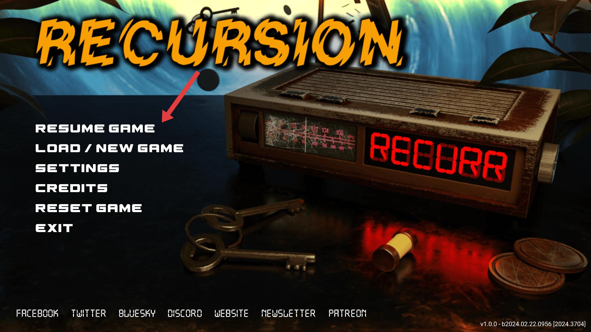1、點擊【RESUME GAME】,繼續游戲進程,在神秘氛圍中開啟冒險,探索游戲世界的奧秘。