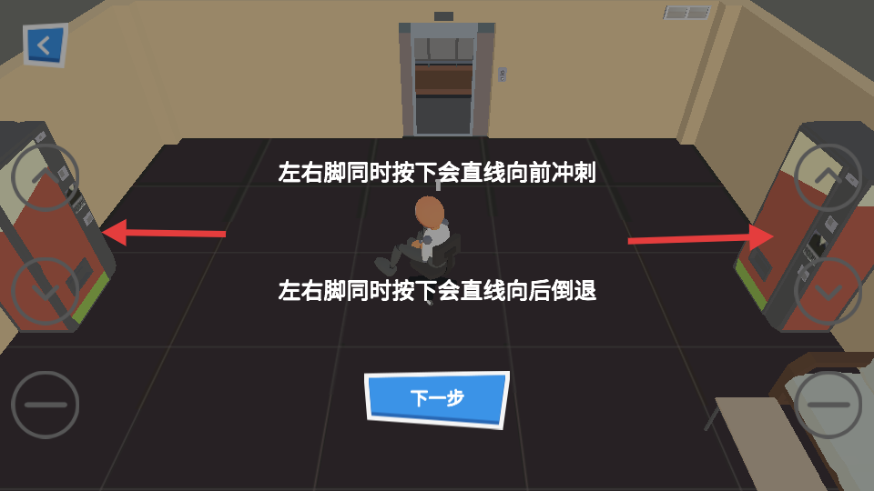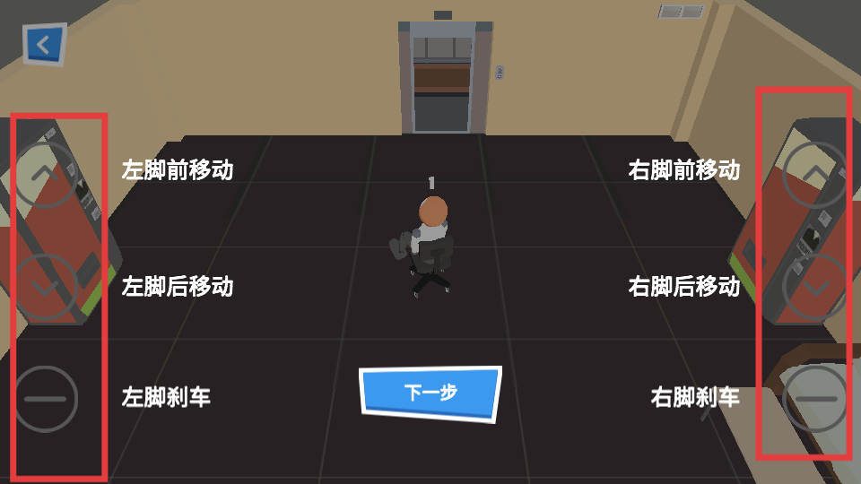 3、初來報道場景中左側操作區可控制左腳前移動、后移動以及剎車,右側操作區對應右腳的前移動、后移動和剎車,通過這些操作來控制角色移動。