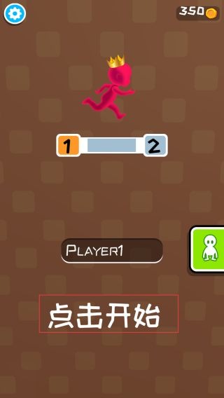 1、玩家在游戲界面,點擊圖標標記的點擊開始按鈕,進入火柴人賽跑比賽,選擇火柴人角色,開啟賽跑挑戰。
